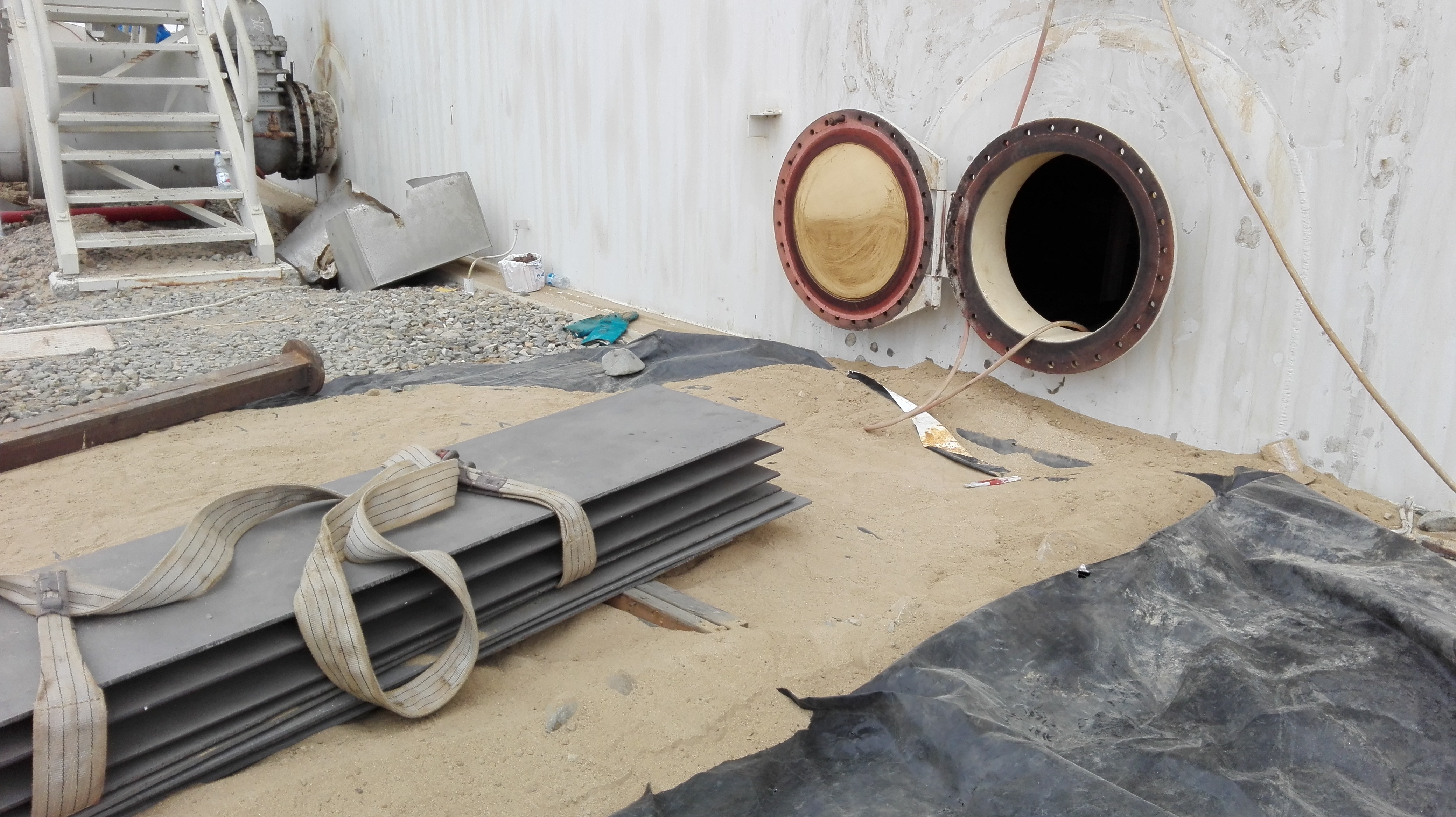The storage tank was put out of service, emptied and de-sludged. Then, our job was divided in the following steps: