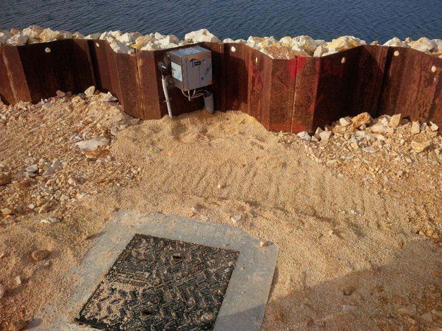The four boreholes for installation of anode chains and the four perforation for the reference electrodes were performed with core disintegration drilling with recirculation of bentonite muds. Anodic chains were tied to the PVC ventilation pipes and driven into the boreholes. Wellheads were closed using pre-cast concrete pits. All the cables from the anode chains had been connected inside a dedicated Junction box and routed to the T/R units on an 80cm-deep trench excavated along the sheet piling and backfilled with fine sand. The same work had been carried out for the reference electrodes, which are connected inside the test posts and lead to the T/R unit for automatic potentiostatic control.